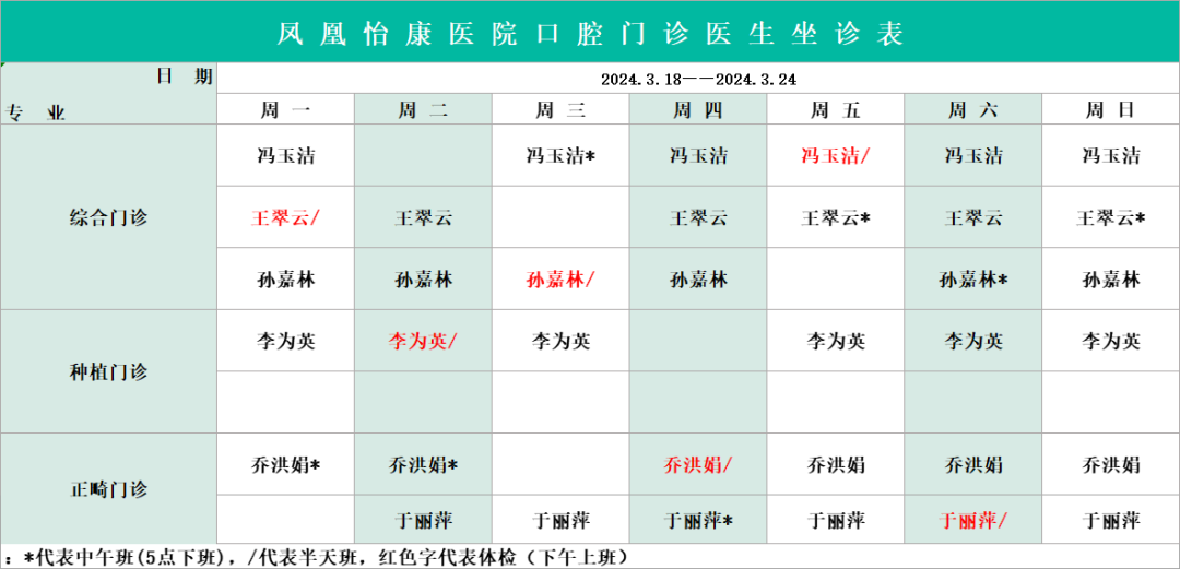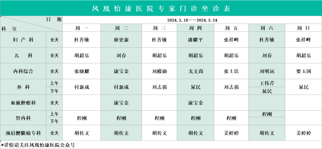 2024年3月18日——2024年3月24日專家坐診時間播報,