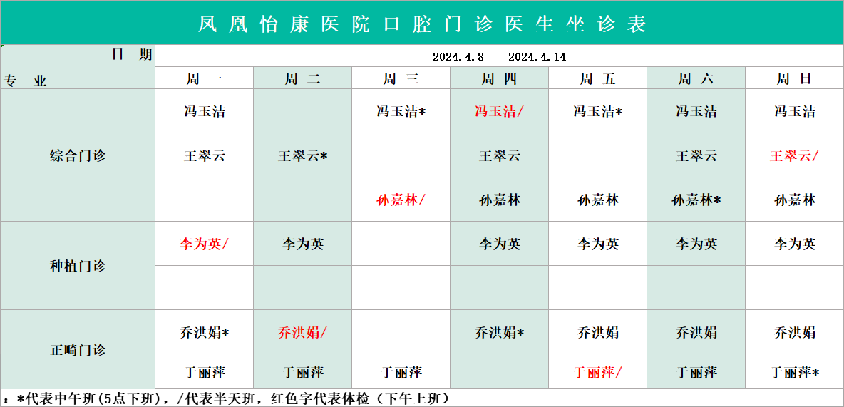 2024年4月8日——2024年4月14日專家坐診時間播報,