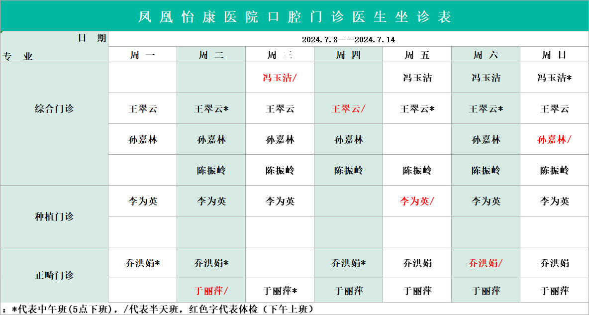 2024年7月8日——2024年7月14日專家坐診時間播報,