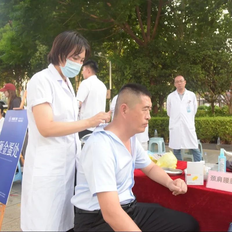 鳳凰怡康醫(yī)院各科室在比賽開始前就已經(jīng)早早搭好了臺子,為前來觀看比賽的居民進行健康檢查。不僅可以測血壓、按摩,還可以現(xiàn)場針灸。
