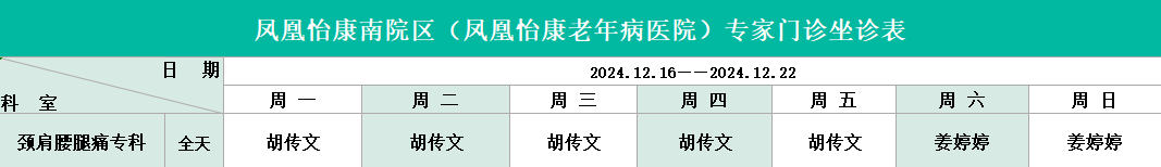 2024年12月16日——2024年12月22日專家坐診時間播報,