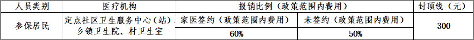 參保居民在市內所有基層定點醫療機構享受普通門診報銷。一個自然年度內,居民門診統籌支付限額累計計算。