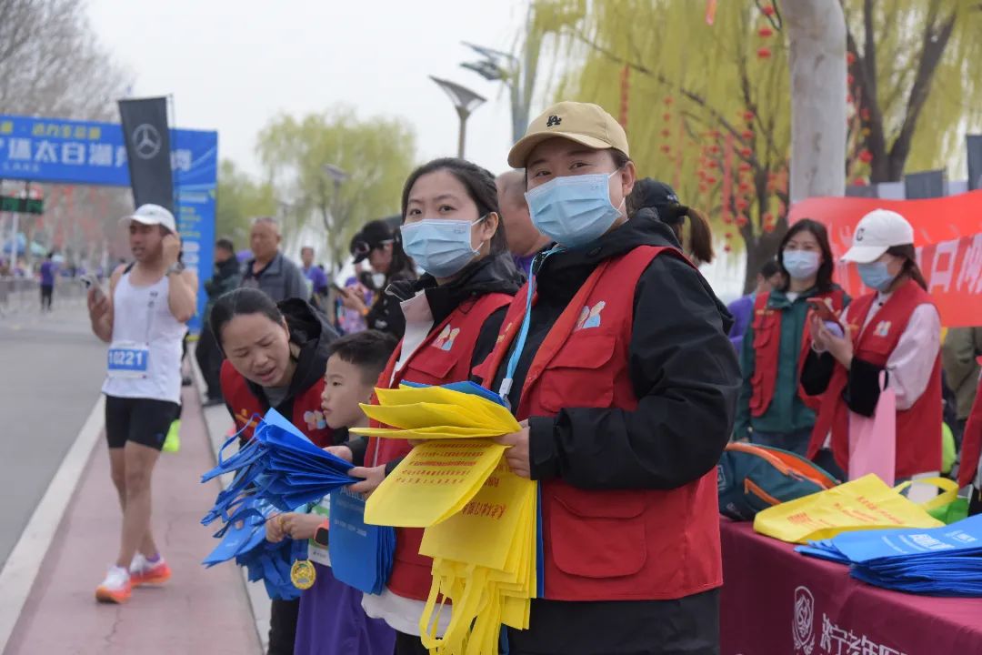 天色微亮,鳳凰怡康的醫療保障小組便整裝待發,奔赴賽道各關鍵點位。從起點到終點,從補給站到醫療點,醫護人員們如同守護者般,時刻緊盯著選手們的狀態,隨時準備應對可能出現的突發狀況,為選手們的生命健康保駕護航。工作人員在賽道沿線及終點區域主動為參賽者加油助威,并向選手及觀眾發放宣傳單頁及定制環保袋。
