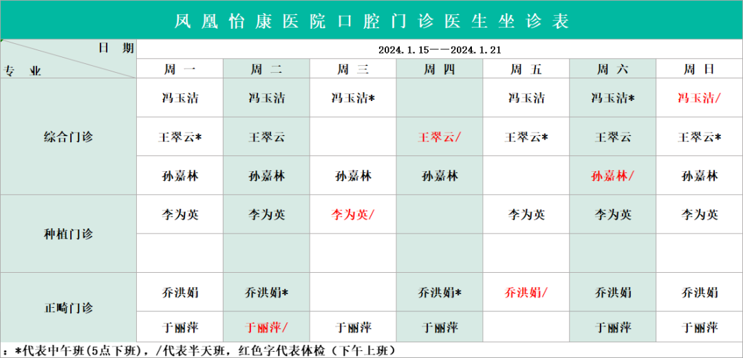 2024年1月15日——2024年1月21日專家坐診時間播報,
