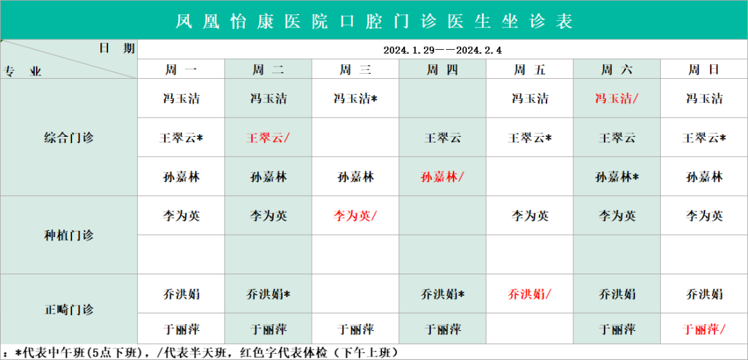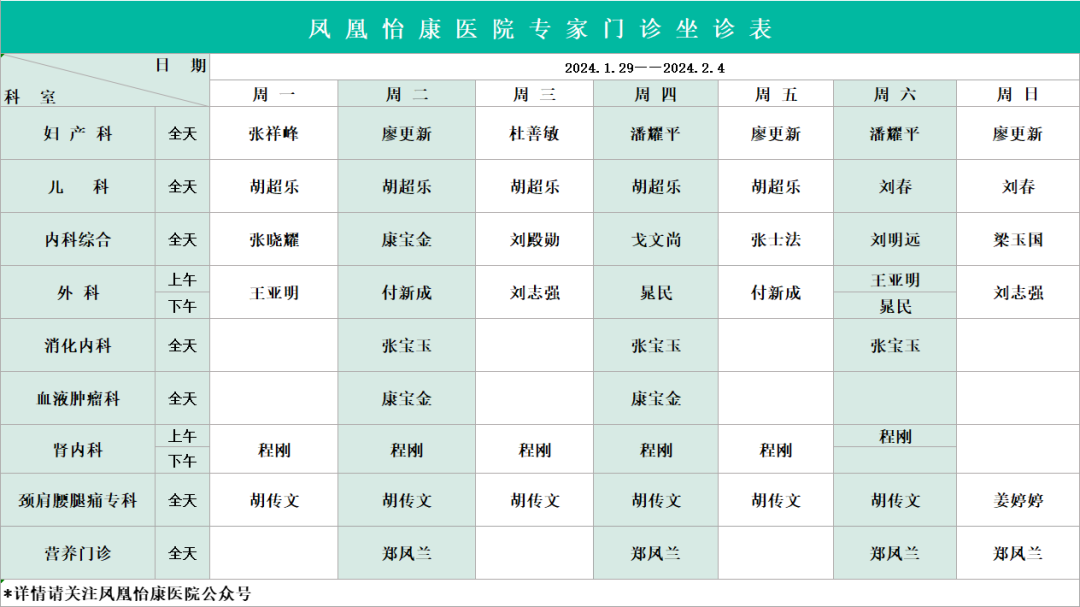 2024年1月29日——2024年2月4日專家坐診時間播報,